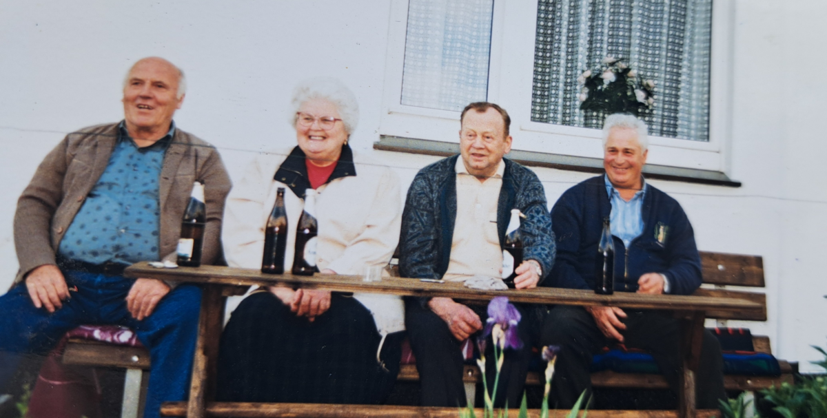 Die ersten Bilder, die ich erhalten habe, zeigen Menschen, die für Toby und mich eine besondere Bedeutung haben: Tobys Eltern Maria „Mia“ und Alberto sowie meinen Onkel Jupp. Jupp und Mia waren schon immer Nachbarn und zudem miteinander verwandt. Weitere Nachbarn auf den ersten beiden Bildern sind Franz Hüttemann und „Pinte“ Berthold Arens.